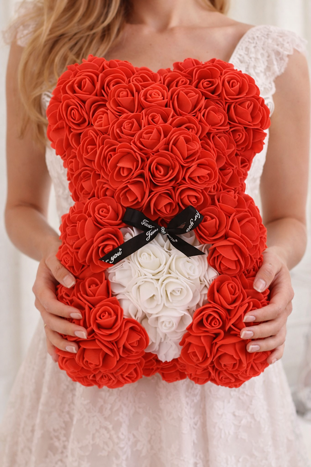 Nasz miś z róż ma wytrzymałą konstrukcję, która zapewnia, że nie tylko zachowuje swój urok i kształt, ale również staje się trwałym symbolem Twojej miłości, więc możesz cieszyć się nim przez długi czas.